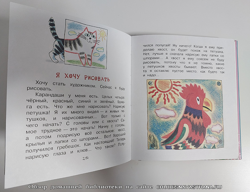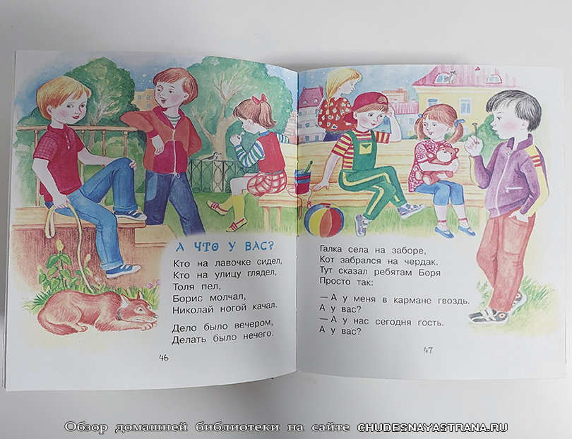 Лёгкий язык и короткие произведения, удобные для чтения детям дошкольного возраста.